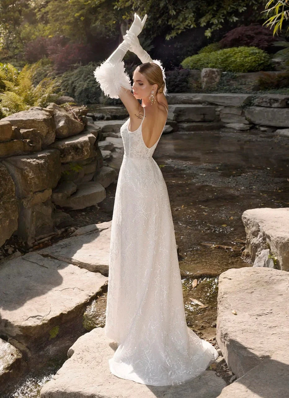 Beautiful Lace V Neckline Sleeveless Sheath Spaghetti Straps Open Back Wedding Dress Bridal Gown Short Sweep Train Detachable Cape Fringe