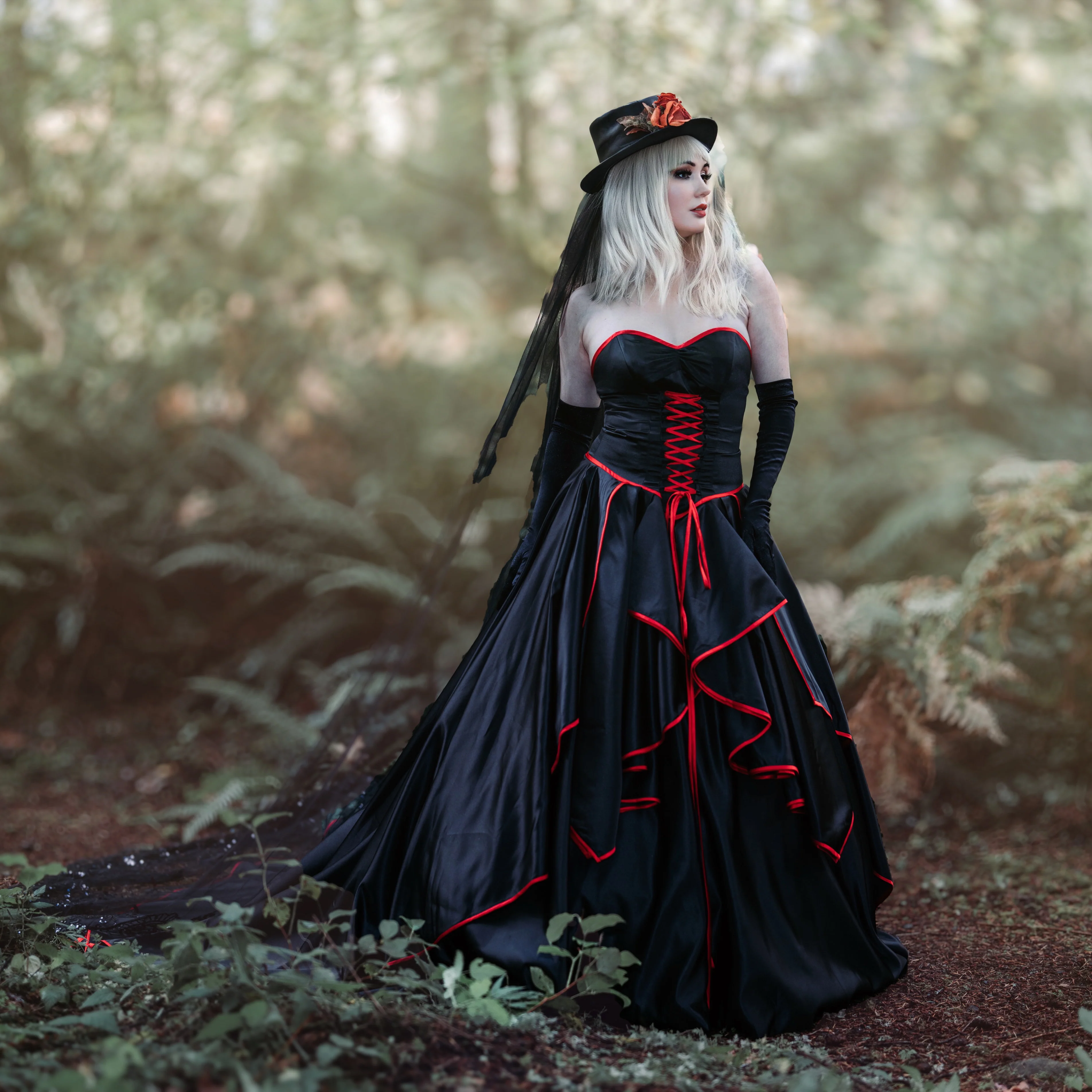 Crafted with care and designed for bold brides and powerful personas, the Scarlet Whisper gown evokes the allure of pirate queens and gothic heroines alike. Whether you're walking down the aisle, sailing into a themed event, or starring in your own fairytale, this gown ensures all eyes are on you.